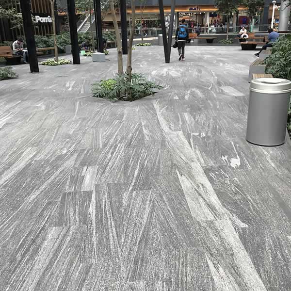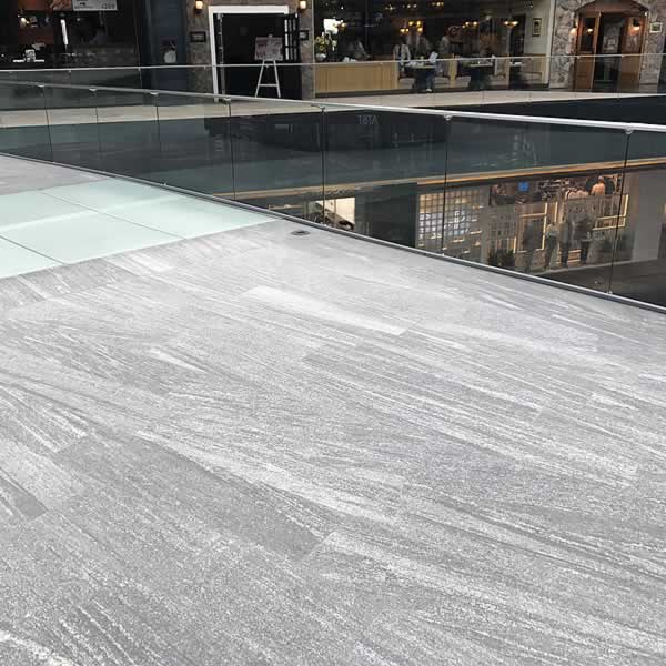 This is a big shopping mall project in Mexico city, Mexico, Ally stone supplied 9,000m2 1.5cm Negro Santiago Granite in flamed+brushed surface.